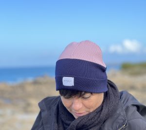 Le bonnet mixte Debbie est Bicolore : Marine/rose. Il est fabriqué en France.