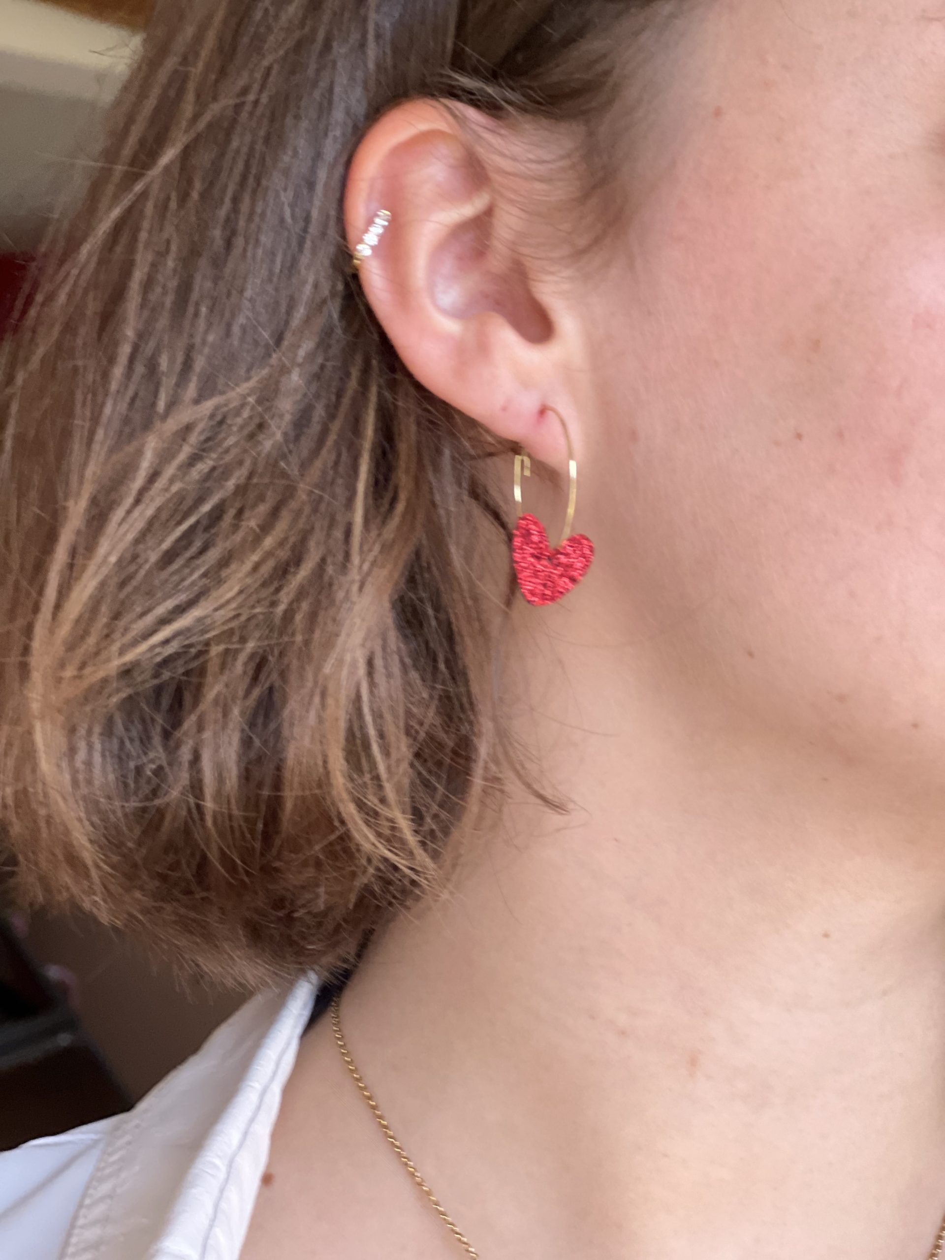 Des créoles créées en feutrine pailletée sont aussi légères qu’une plume et très faciles à insérer.
